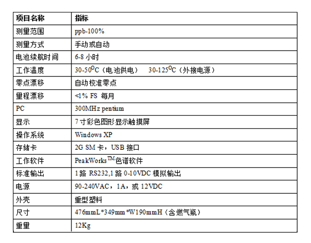 可達到 1 個 ppb 的分辨率,2 秒鐘給出現場實時檢測數據